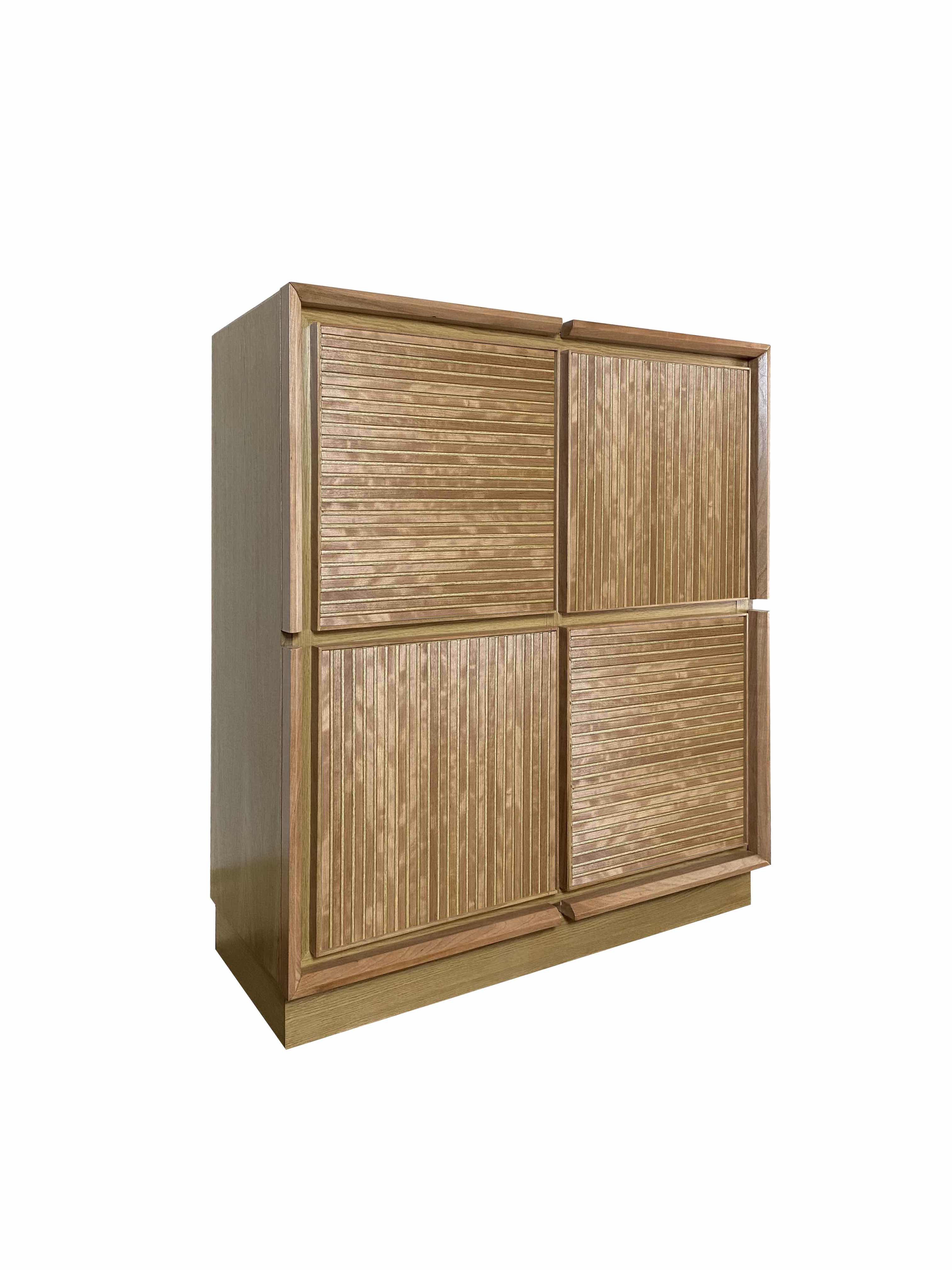 Sideboard in oak with cherry and walnut finishes, 4 doors and internal shelves.